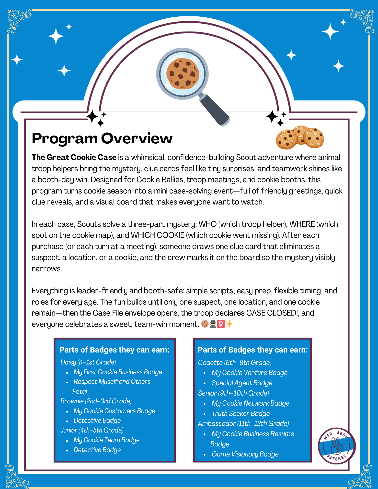 šŸ‘‰ Add THE GREAT COOKIE CASE to your cookie season for a fast, fun experience that builds real skills and real pride.