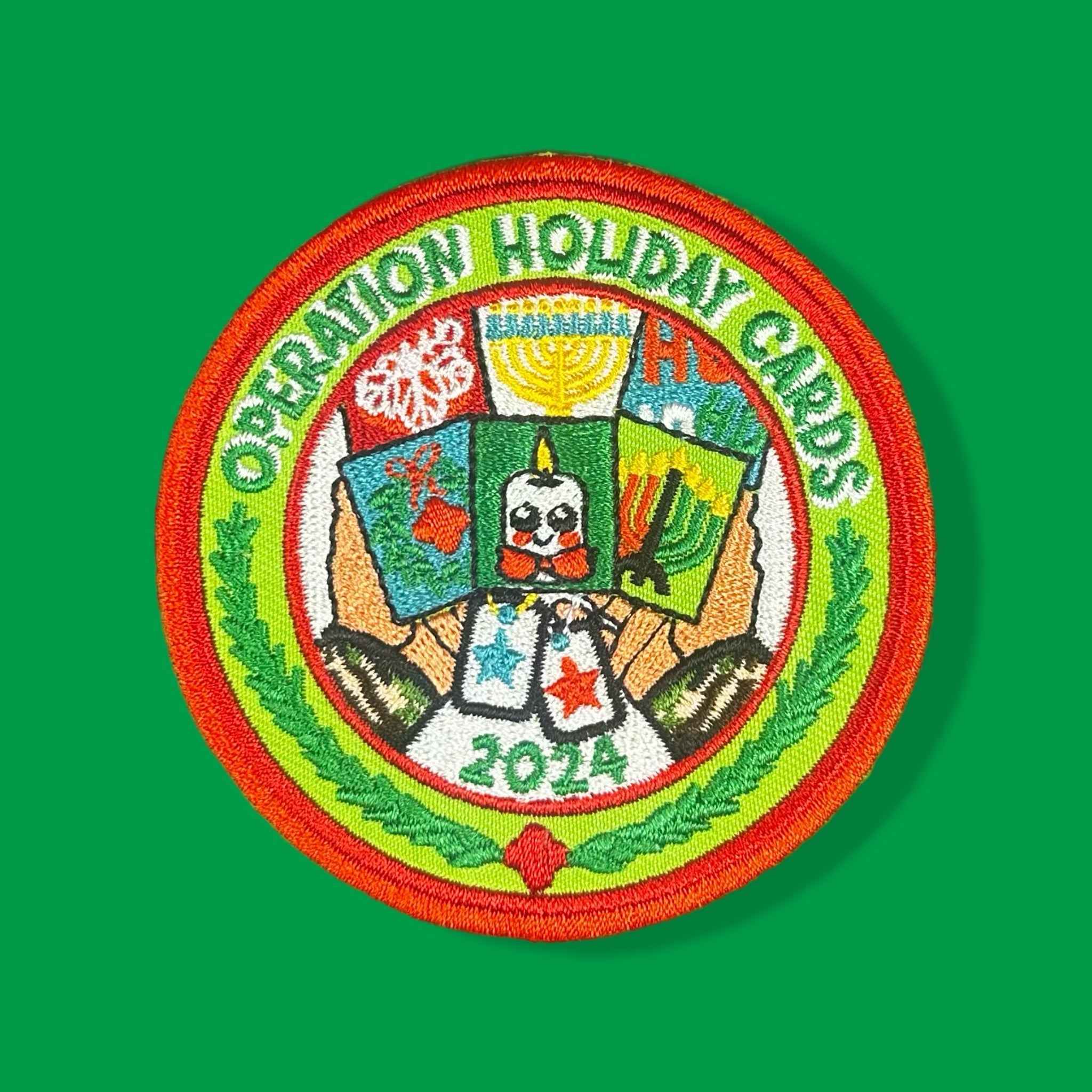 High-quality embroidered patches with festive, hand-drawn holiday designs